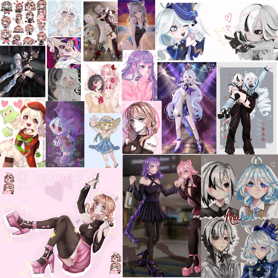 examples of my artwork! please do credit if used for pfps, emotes, banners, etc ..